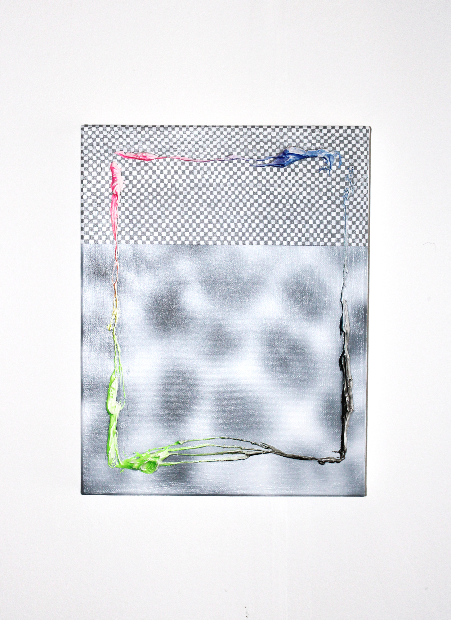 Ce temps de résidence immersif lui a permis d’approfondir ses recherches à travers l’expérimentation de jeux de matières, de textures et de couleurs. Il y a poursuivi son travail d’abstraction picturale et produit une série de six peintures acryliques sur toile, de formats variés. Les œuvres issues de cette période proposent des expériences visuelles parfois brillantes et intrigantes, nourries par des effets de lumière et de reflets, notamment grâce à l’usage de peintures chrome. Elles témoignent également d’une volonté accrue de générosité dans les volumes et dans l’épaisseur de la matière picturale.